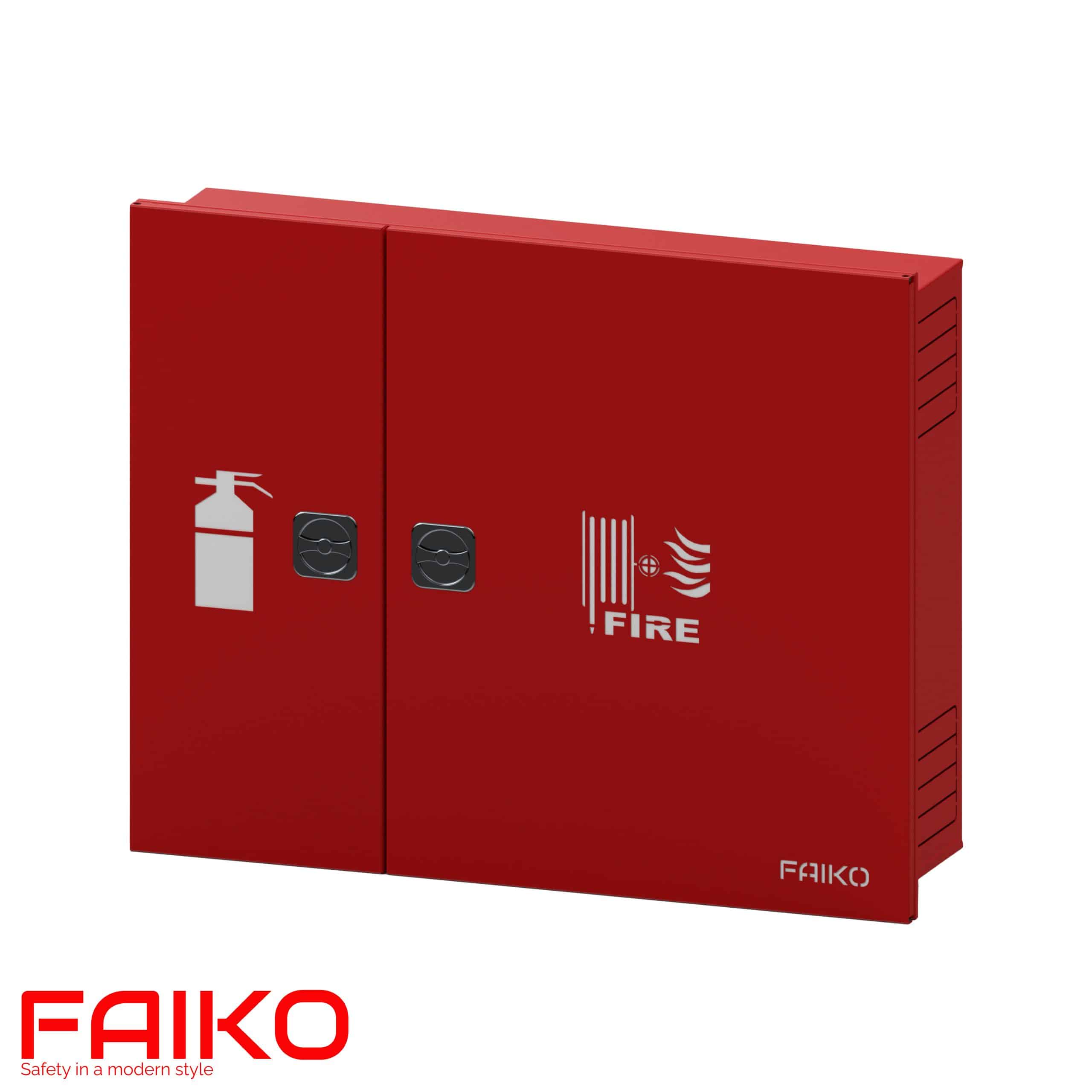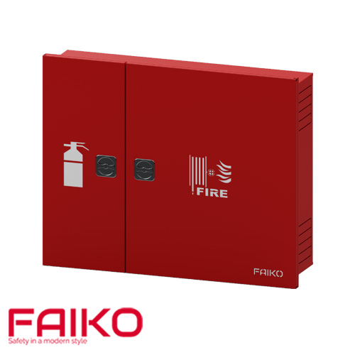 جعبههای آتش نشانی دوقلو تولید شده توسط فایکو در انواع روکار و توکار با متریالهای فولادی و استیل، برای قرارگیری شیلنگ تخت، قرقره هوزریل استاندارد، کپسول آتش نشانی و شیرآلات آتش نشانی مناسب میباشد.